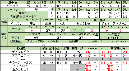 逆にドリブルは不一致になりますが火力はそこそこを維持。相手が属強DFなら十分通用します