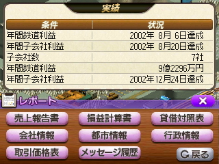 こちらはド忘れしてしまい、実施したのは2回目以降からです。最終的に鉄道利益は約9億8700万だったので、100万単位の無駄金さえ積み重ねてなければ1回目で達成が可能だったかもしれません。普段のシナリオのノリでやったツケですね