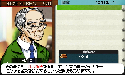 一、二度目の挑戦ではどちらも1年目で鉄道利益が9億ちょいと、目標の10億をギリギリ達成できなかったのでやり直し、三度目でクリアしました。