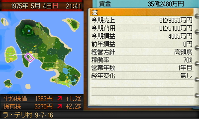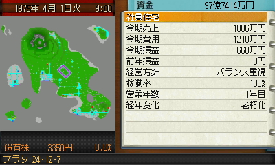 ・シナリオ中の時代は港がドル箱状態なので縛ってプレイするのも面白そうでしたが、期限が76年4月までと開始から一年しかなく、都市内販売だけで資源利益200億は難しそうだった為、今回は普通に港を使って攻略することにしました