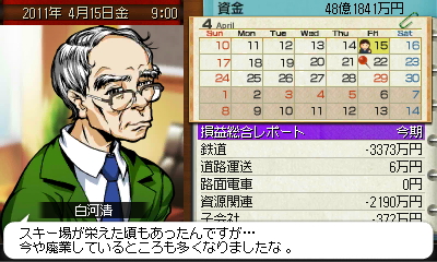 炭鉱とスキー場についての言及。スキー場は子会社利益そこそこ稼げますし、マップは広いので一部地域をスキー場やホテルで固めた観光地っぽくしてみようかと考案中