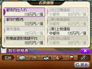 石炭の価格は2年目でも都市内<上悦を維持。前回記した石炭取引は今後も有効そう