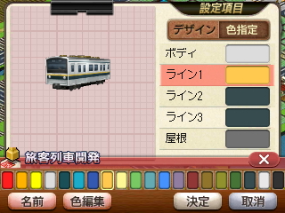 新車にしてから1往復にかかる時間を5時間半に短縮できました。また本数も6本に増発自分は車両配色に関してはリアル寄りというか地味目が好みなので、ドアにはボディと同じ色、屋根には無難な灰色・黒系統ばかり使っていましたが、今回は初期車の配色を踏襲しつつ屋根・ドアが目立つ塗装にしてみました