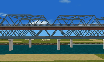 今回の橋は道路橋青トラスと鉄道橋青トラスの組み合わせで使用しましたがほかの橋でも可能です。ですがこの組み合わせが最も自然なので、私としてはこれをおすすめします。